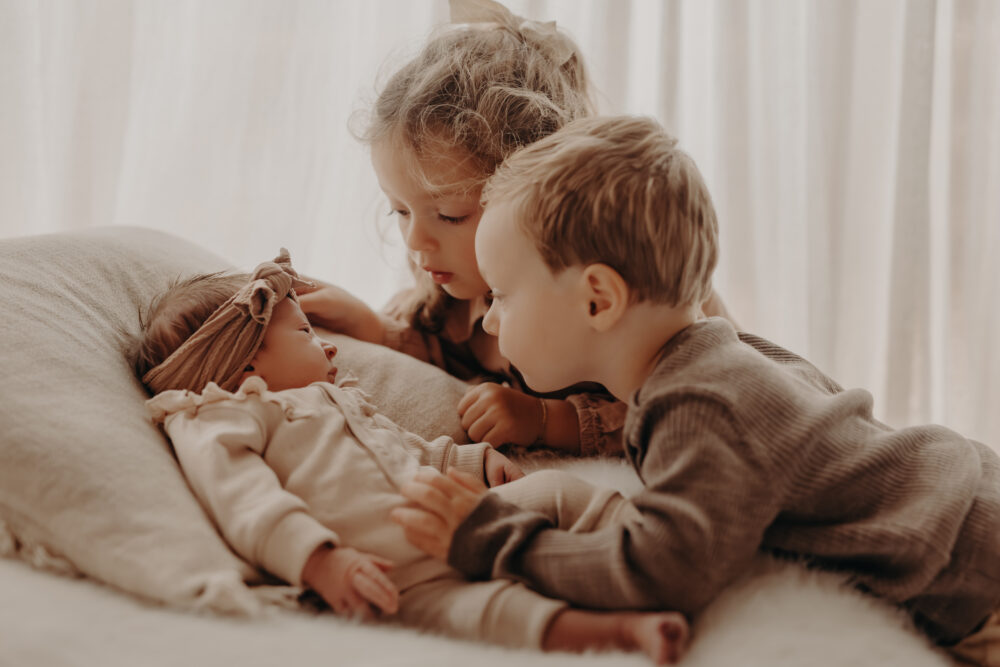 Gerade bei Babys mit älteren Geschwistern entstehen die lebendigsten, ehrlichsten und emotionalsten Familienbilder.