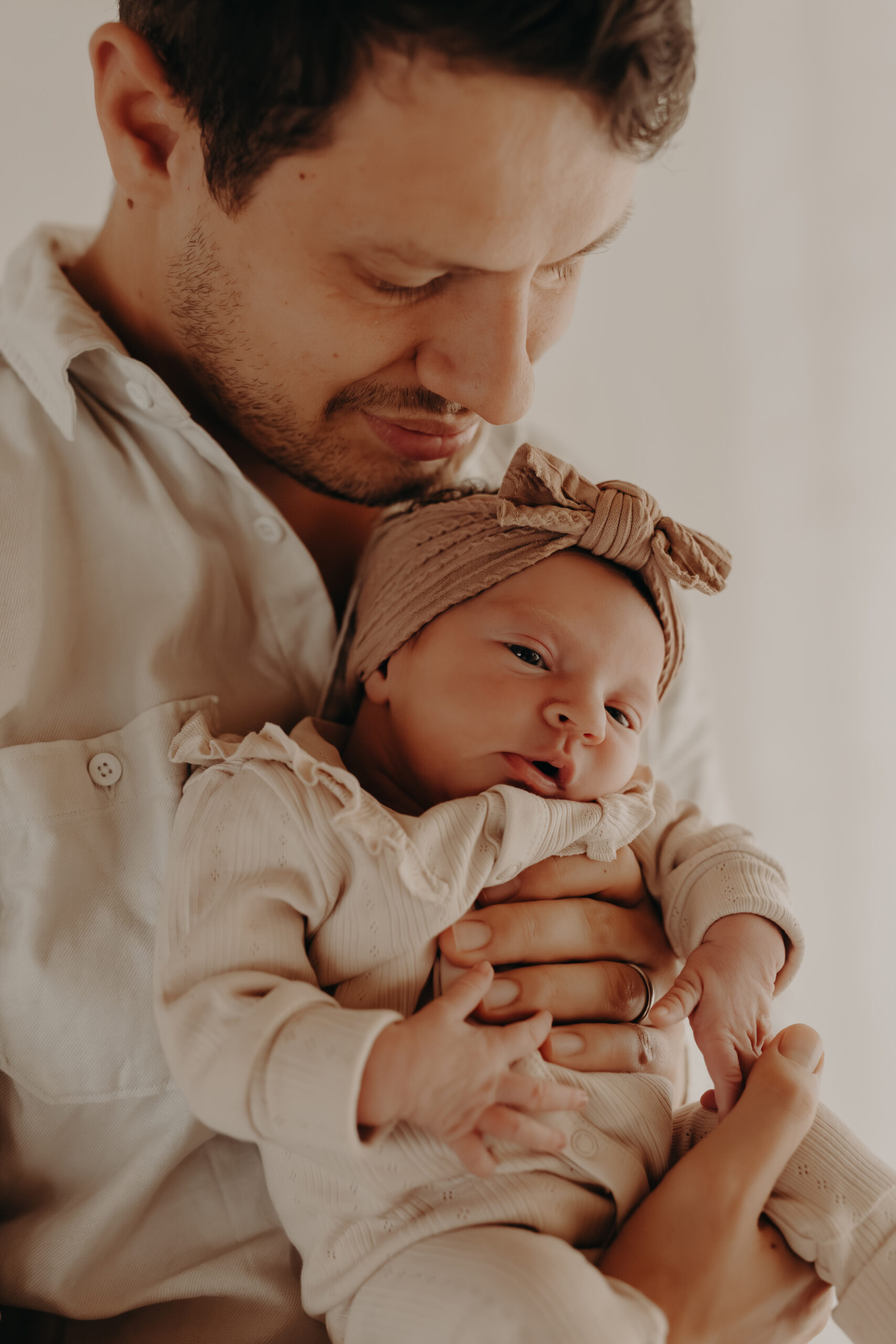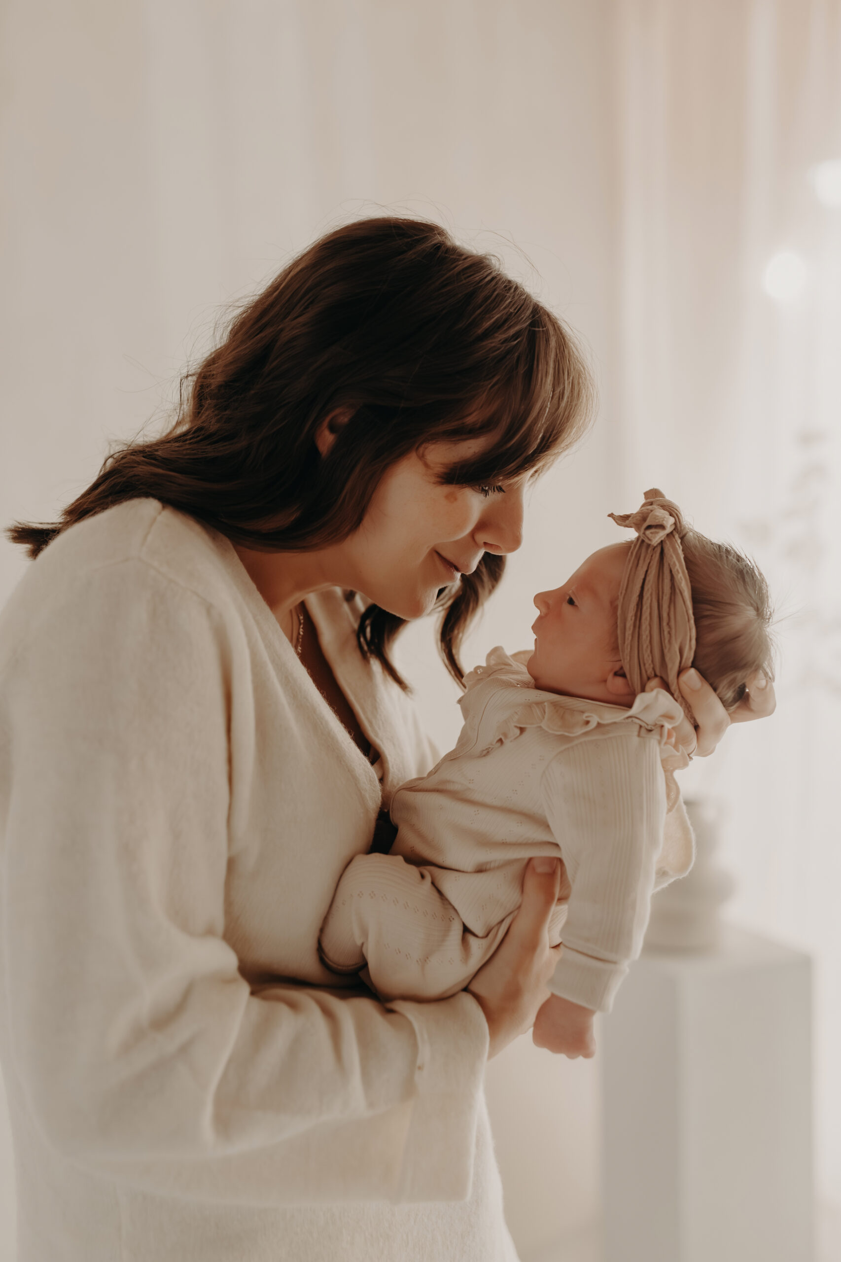 Sanfte Hauttöne, weiches Fensterlicht und die Nähe zwischen den beiden machen diese Motive so wertvoll für ein Babyshooting.