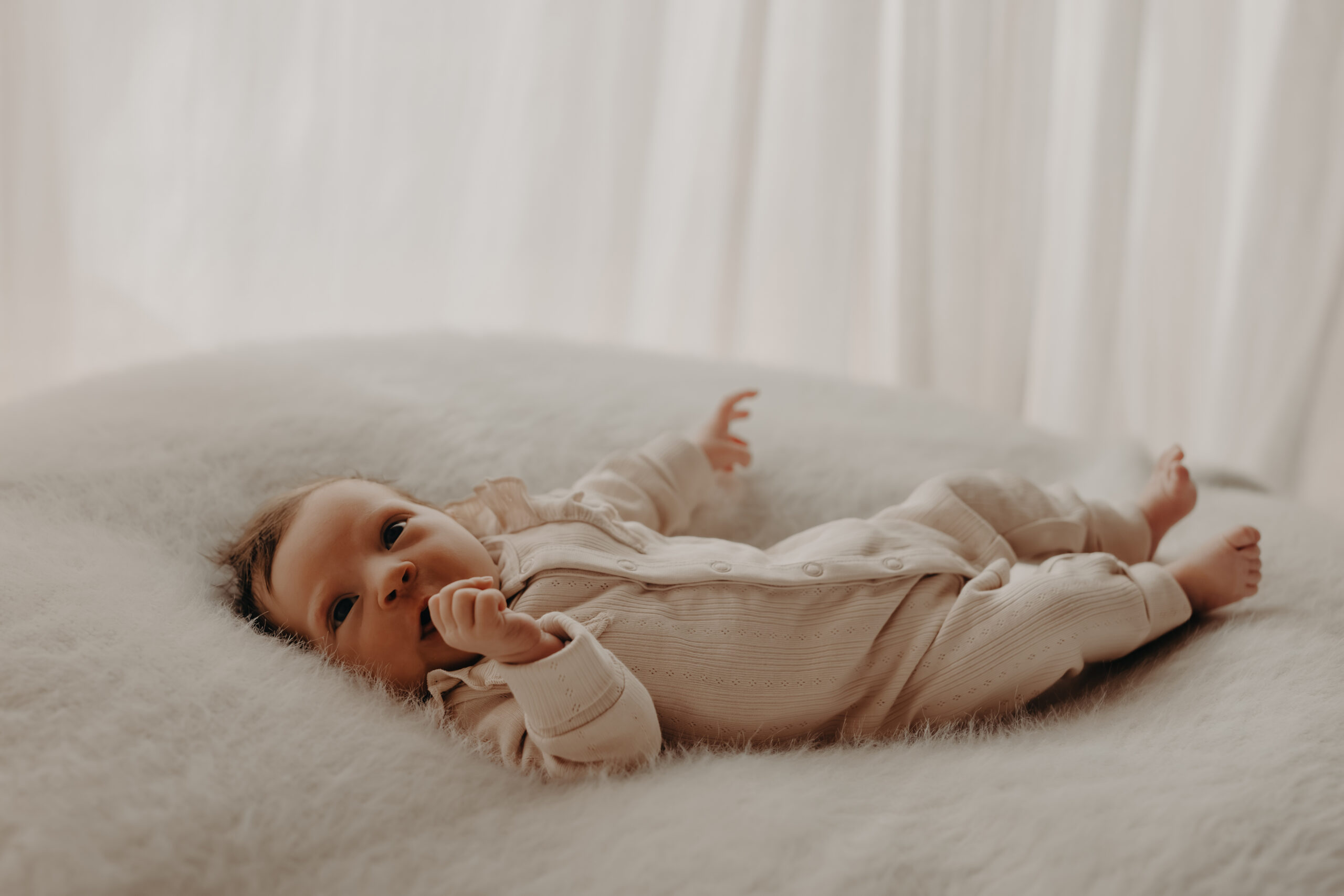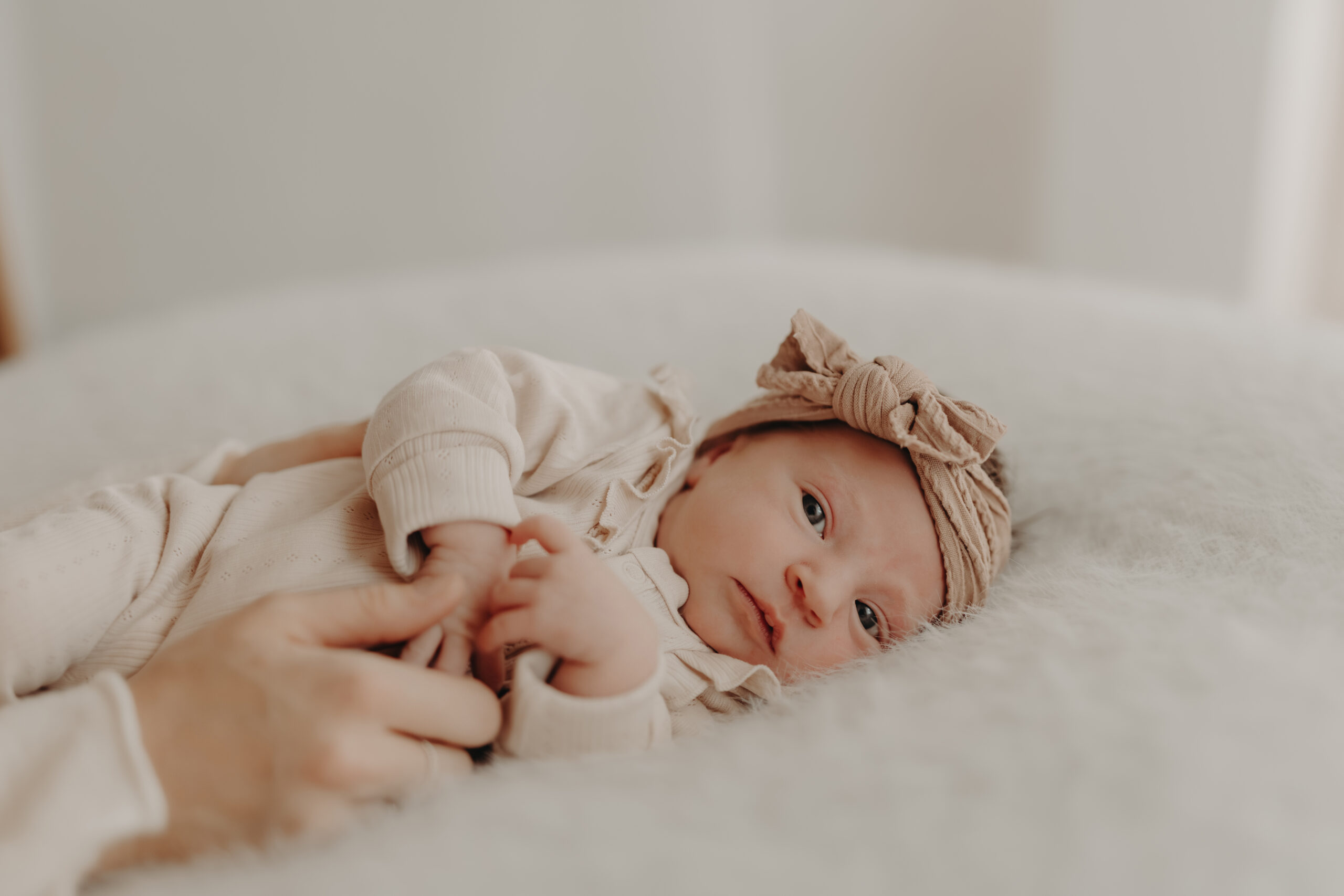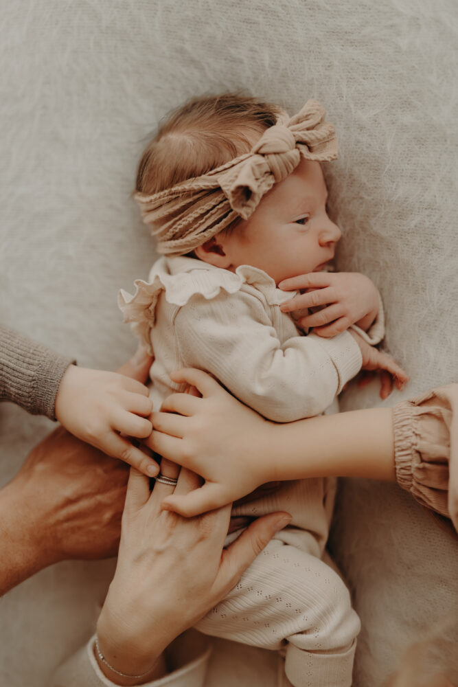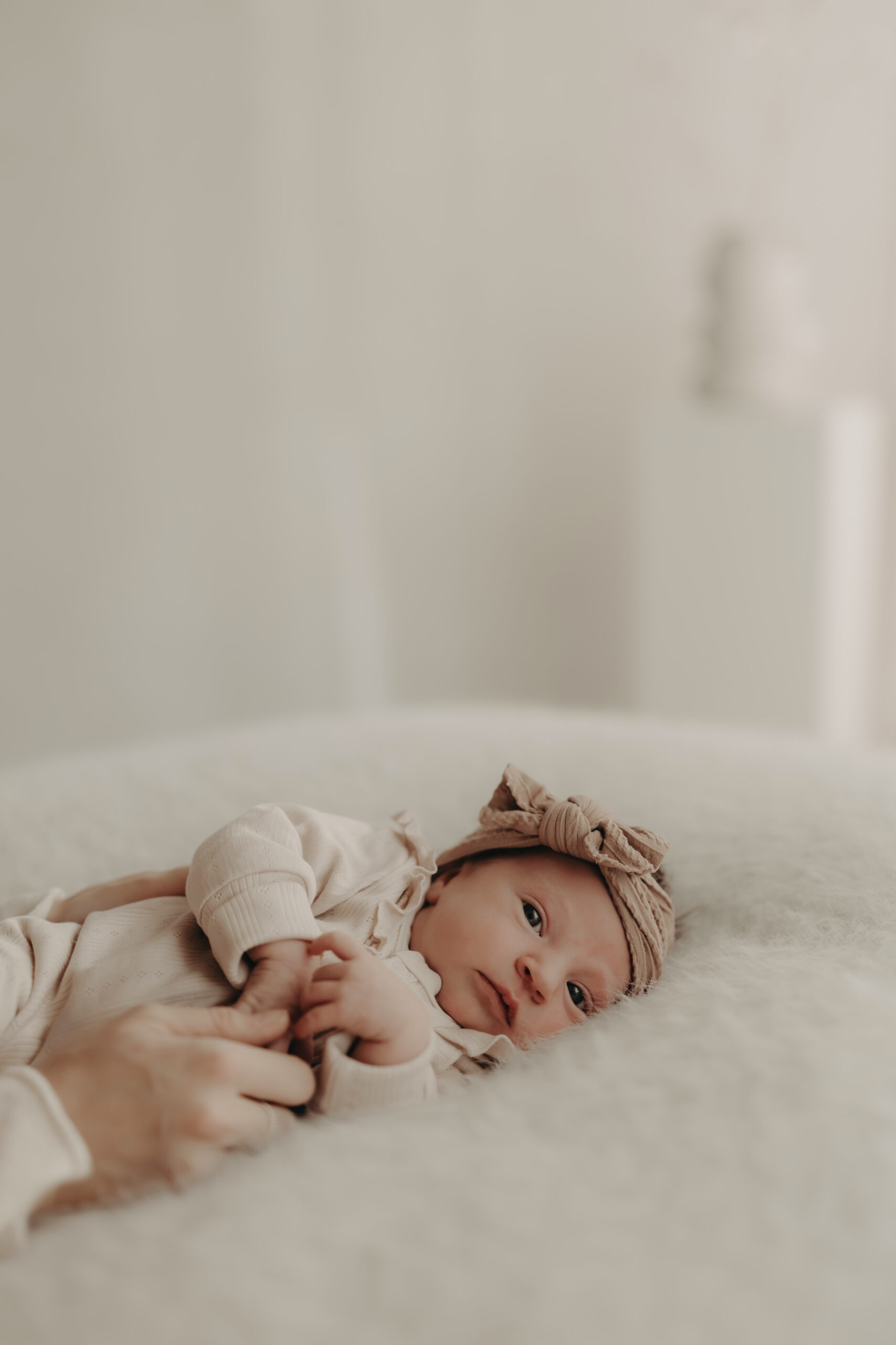 In diesem Set entstanden besonders ruhige, minimalistische Babybilder, die die Persönlichkeit des Neugeborenen unterstreichen.