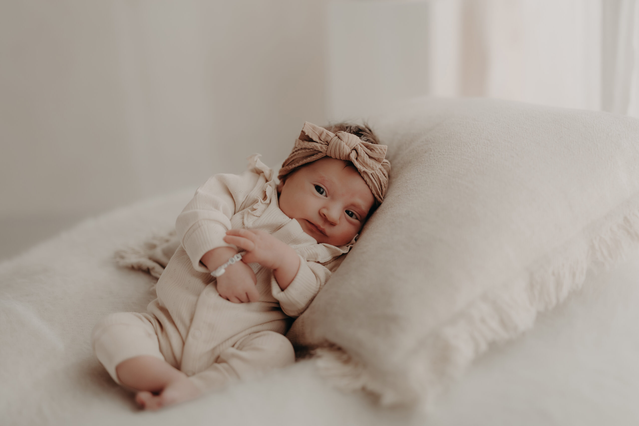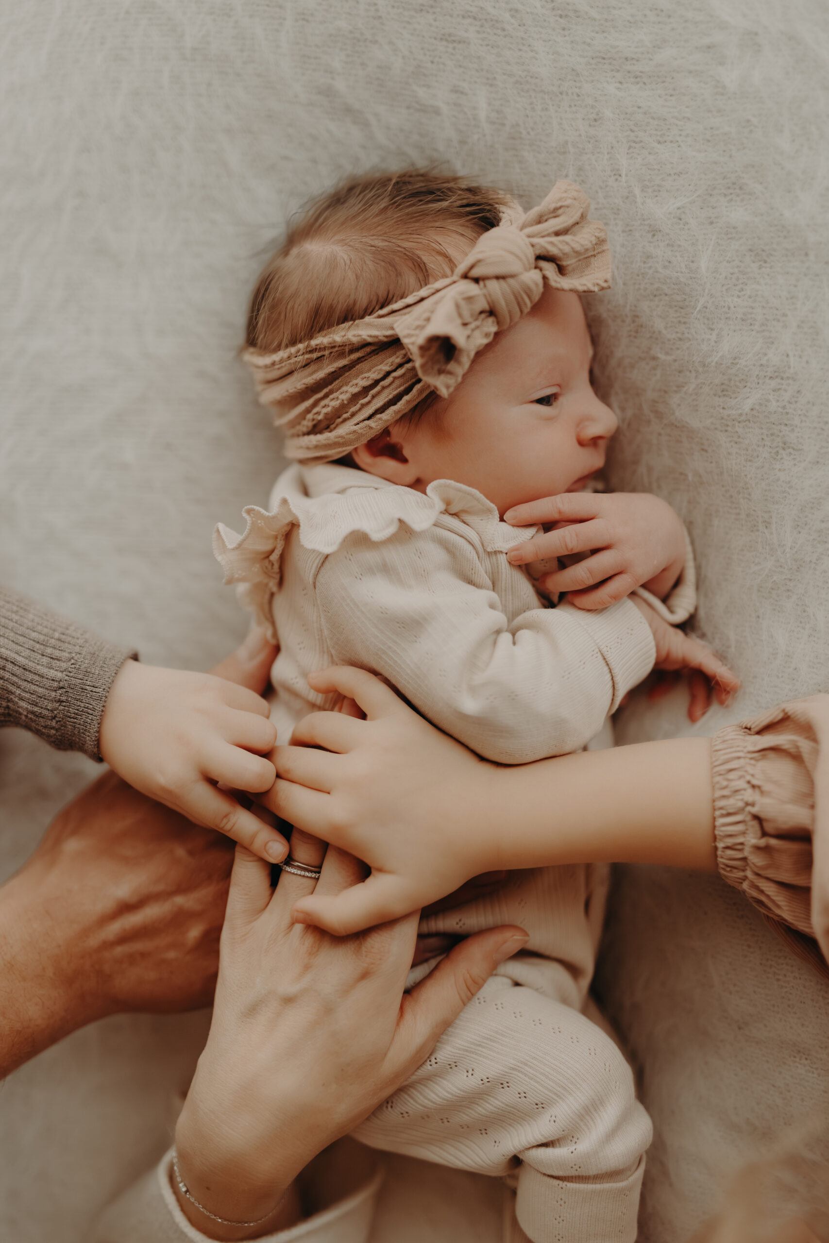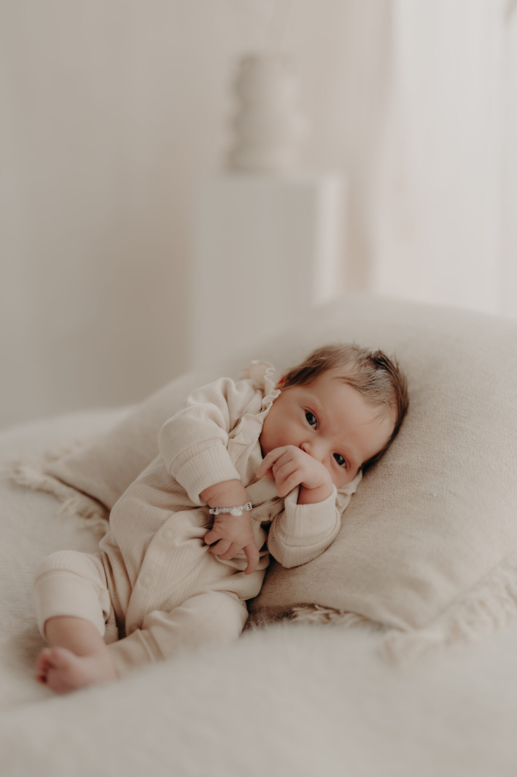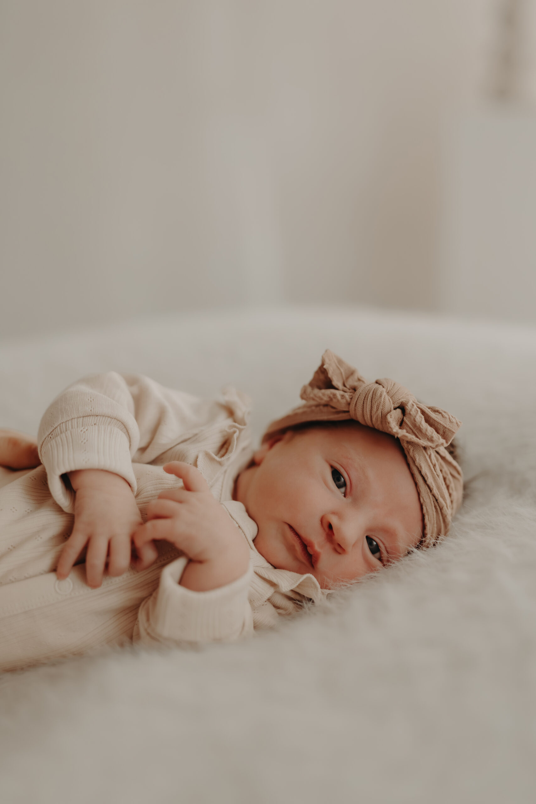 In diesem Set entstanden besonders ruhige, minimalistische Babybilder, die die Persönlichkeit des Neugeborenen unterstreichen.